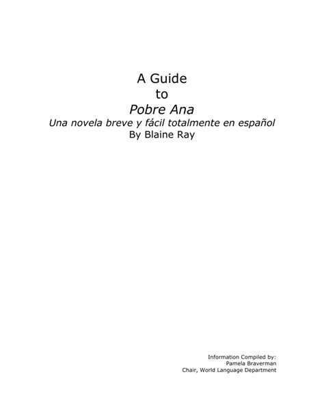 Reading Online Pobre Ana Study Guide Answer Key Doc BookBoon
